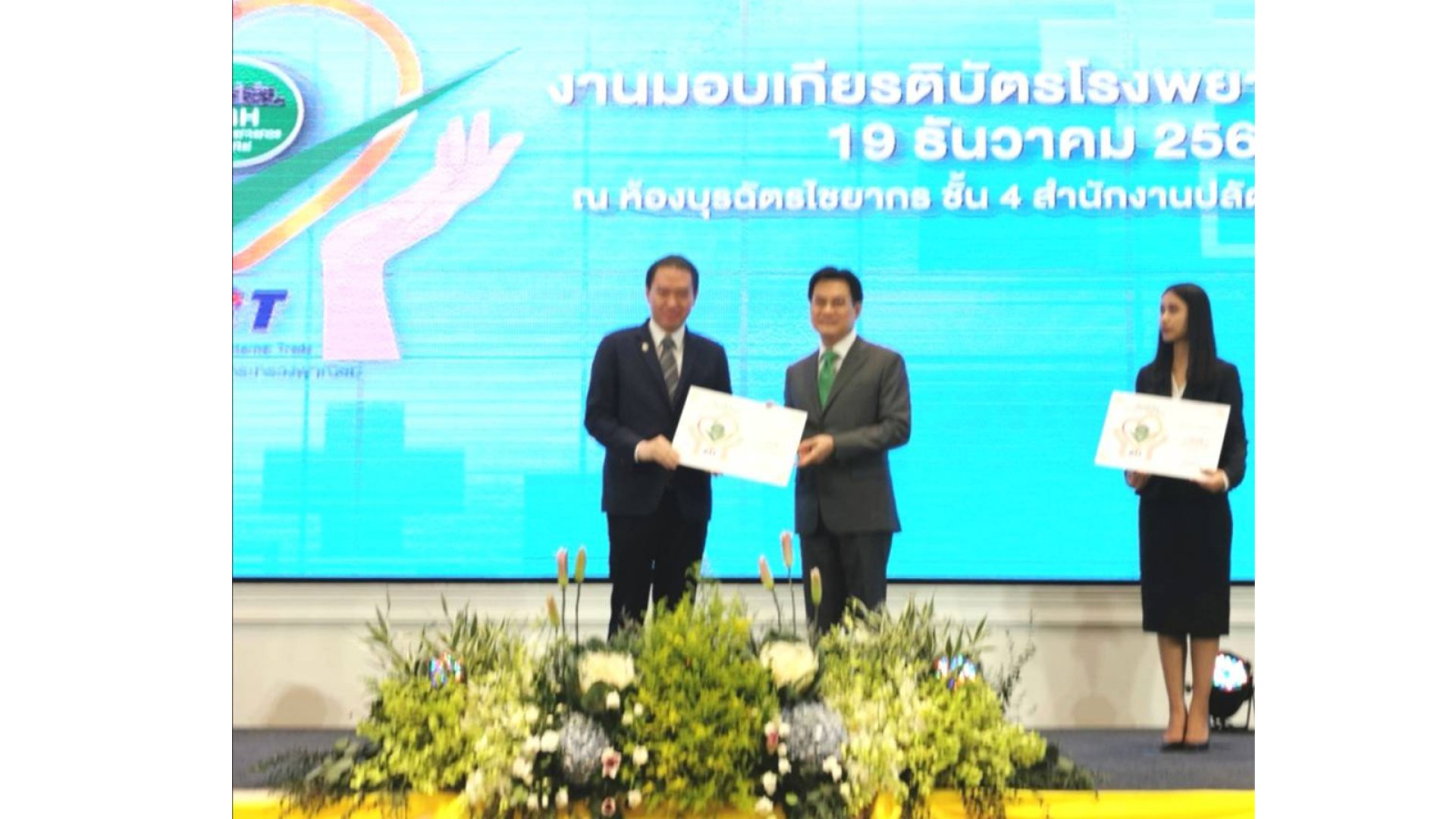 ดร. สิทธิวัตน์ กำกัดวงษ์ ประธานกรรมการบริหาร กลุ่มโรงพยาบาล IMH เข้ารับมอบเกียรติบัตร "โรงพยาบาลคุณธรรม"